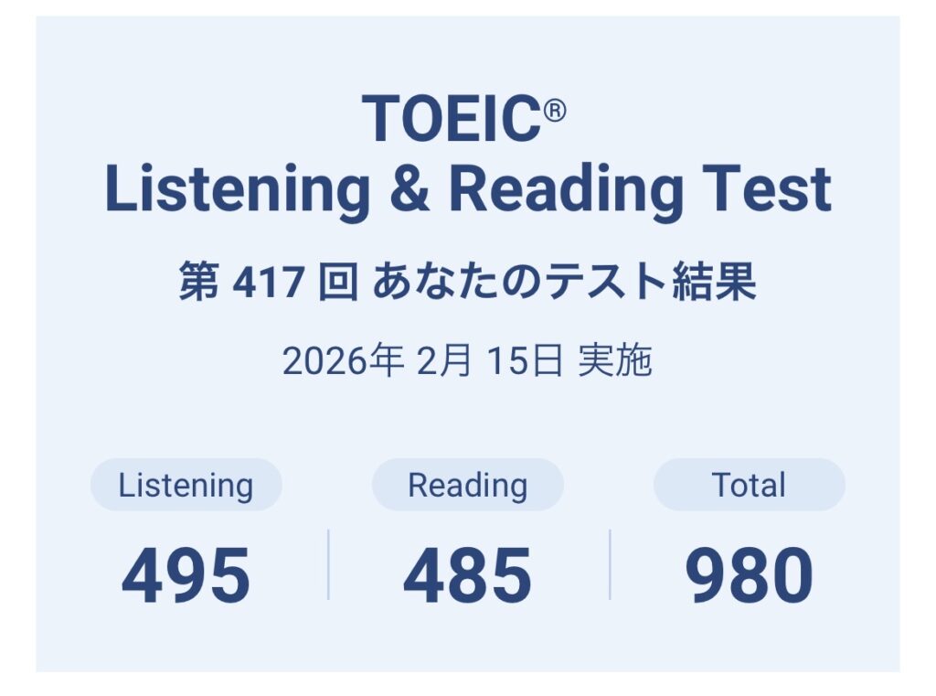 10年ぶりのTOEIC。結果は980点とこれから…