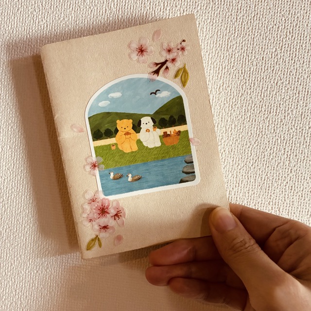 持ち歩きメモ用のトラベラーズノートを桜でデコってみたり。