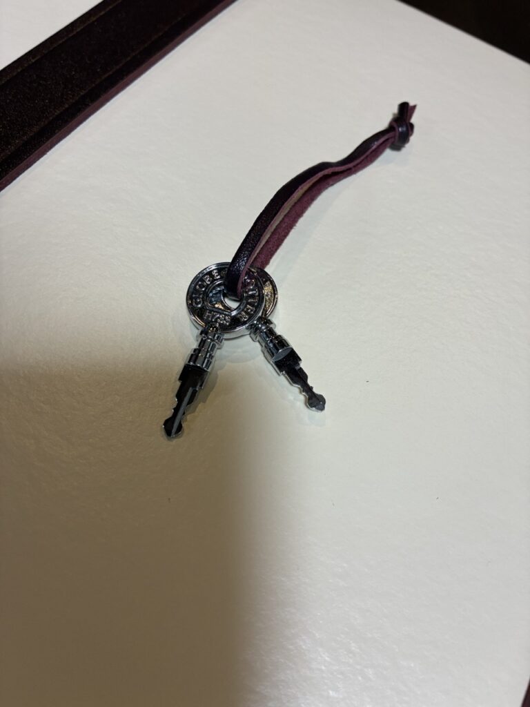 ベルトを締めたり、鍵は両側にあってアナログで回したり、ちょっと手間がかかるとこもなんか味だなと思うのです。